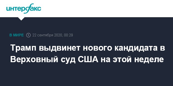 Трамп выдвинет нового кандидата в Верховный суд США на этой неделе