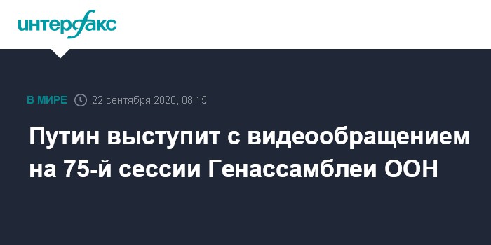 Москва. 22 сентября. INTERFAX.RU - Выступление президента РФ Владимира Путина на 75-й сессии Генеральной Ассамблеи ООН будет показано во вторник.