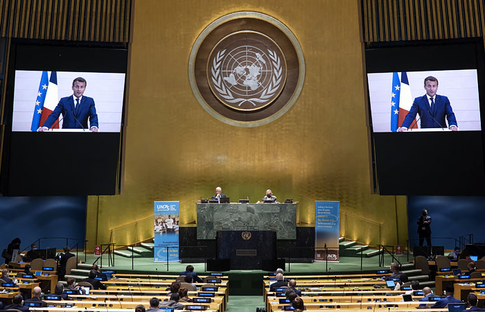 Макрон на Генассамблее ООН призвал Россию пролить свет на случившееся с Навальным