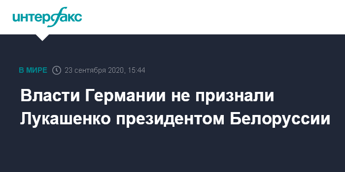 Москва. 23 сентября. INTERFAX.RU - Германия не признает Александра Лукашенко президентом Белоруссии и после инаугурации, заявил официальный представитель немецкого правительства Штеффен Зайберт.
