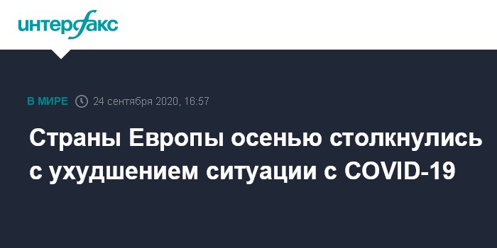 Москва. 24 сентября. INTERFAX.RU - Ряд европейских стран в последнее время фиксирует рекордные показатели случаев заражения коронавирусом COVID-19.