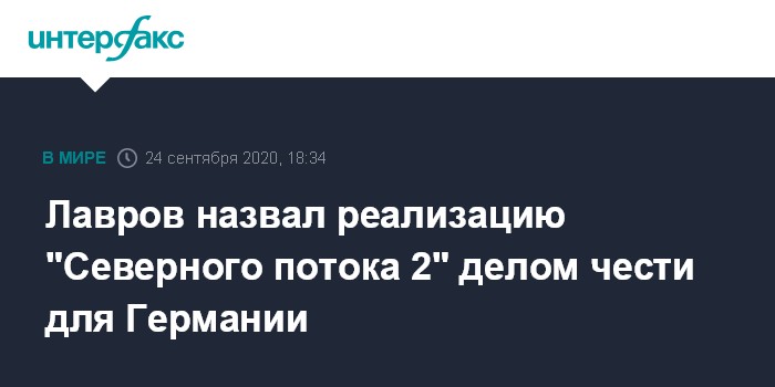 Москва. 24 сентября. INTERFAX.RU - Вопрос реализации "Северного потока-2" является делом чести для Германии, считает глава МИД РФ Сергей Лавров.