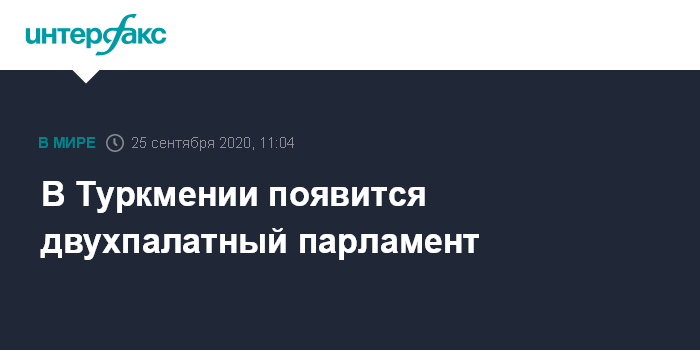 Москва. 25 сентября. INTERFAX.RU - Халк Маслахаты Туркменистана (Народный Совет, высший представительный орган власти республики) одобрил поправки в Конституцию о создании в стране двухпалатного парламента, сообщает Государственное информационное агентство страны (TDH).