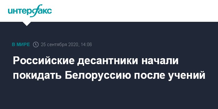 "В пятницу, 25 сентября, на железнодорожной станции в городе Брест российские десантники из Ивановского соединения воздушно-десантных войск Вооруженных Сил России, принимавшие участие в совместном учении "Славянское братство-2020", приступили к погрузке военной техники и личного состава для убытия воинским эшелоном в пункт постоянной дислокации город Иваново", - говорится в сообщении.