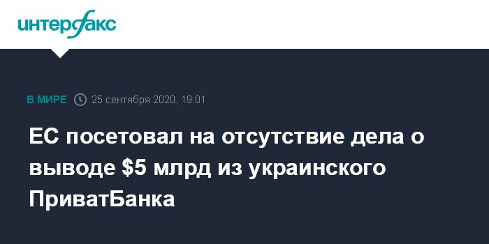 ЕС посетовал на отсутствие дела о выводе $5 млрд из украинского ПриватБанка