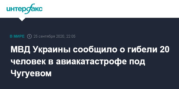 Москва. 25 сентября. INTERFAX.RU - В авиакатастрофе под Харьковом погибли 20 человек, двое тяжело раненных, сообщает МВД Украины.