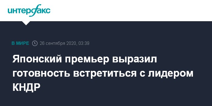 "Я готов встретиться с председателем Ким Чен Ыном без каких-либо условий. Установление конструктивных отношений между Японией и Северной Кореей не только послужит интересам обеих сторон, но также внесет большой вклад в региональный мир и стабильность", - сказал Суга.