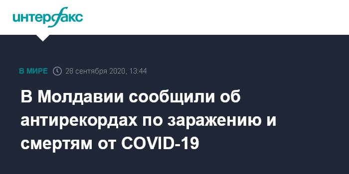 Москва. 28 сентября. INTERFAX.RU - Третью неделю подряд Молдавия обновляет антирекорды по количеству случаев заражения коронавирусом, свидетельствуют данные, представленные в понедельник пресс-службой министерства здравоохранения, труда и социальной защиты страны.