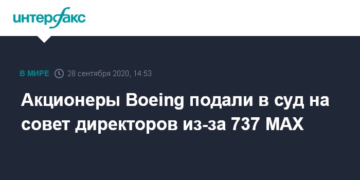 Москва. 28 сентября. INTERFAX.RU - Акционеры авиастроительного концерна Boeing подали в суд штата Делавэр иск к совету директоров компании, обвинив их в недостаточном контроле за действиями руководства после двух крушений лайнеров модели 737 MAX и выявленных проблем с безопасностью самолетов.
