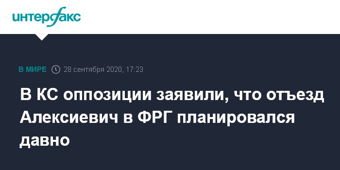 Москва. 28 сентября. INTERFAX.RU - Отъезд лауреата Нобелевской премии, члена президиума Координационного совета (КС) белорусской оппозиции Светланы Алексиевич планировался давно, но откладывался из-за ситуации с коронавирусом.