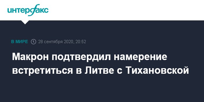 Москва. 28 сентября. INTERFAX.RU - Президент Франции Эммануэль Макрон, находящийся сейчас в Литве, подтвердил намерение провести встречу с лидером белорусской оппозиции Светланой Тихановской.