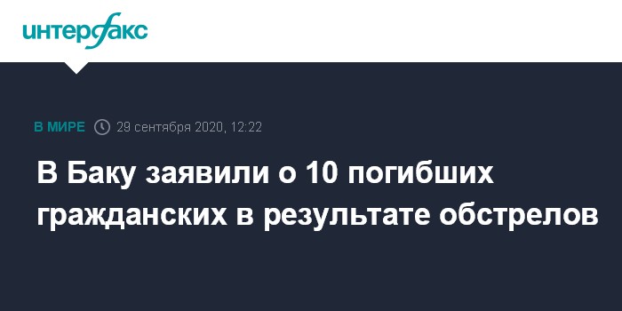 В Баку заявили о 10 погибших гражданских в результате обстрелов