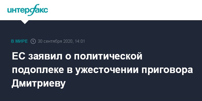 ЕС заявил о политической подоплеке в ужесточении приговора Дмитриеву