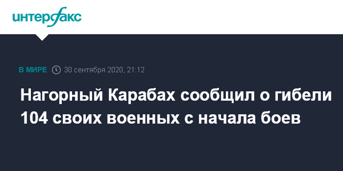 Всего, по уточненным данным Минобороны, с начала боевых действий 27 сентября погибли 104 военнослужащих армии НКР.