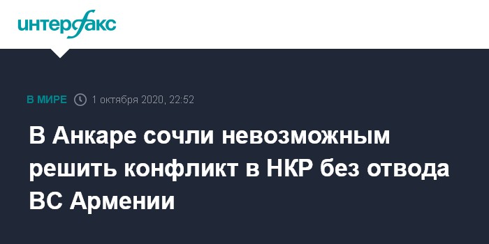 В Анкаре сочли невозможным решить конфликт в НКР без отвода ВС Армении