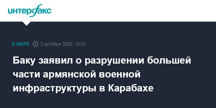 Баку заявил о разрушении большей части армянской военной инфраструктуры в Карабахе