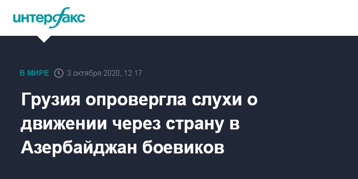 "Хочу прокомментировать распространенную в социальных медиа дезинформацию, что якобы с территории Турции в направлении Азербайджана через территорию Грузии перемещаются участвующие в боевых действиях в Сирии неформальные вооруженные формирования. (...) Хочу подчеркнуть, что у этой информации нет никаких оснований, это ложь, направленная на то, чтобы вызвать эскалацию и напряжение в Грузии и в целом в регионе", - сказал Лилуашвили.