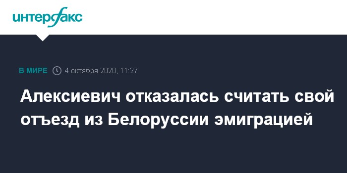 Как сообщалось, 28 сентября Алексиевич уехала в Германию. В пресс-службе Координационного совета белорусской оппозиции сказали, что ее отъезд планировался давно, но откладывался из-за ситуации с коронавирусом.