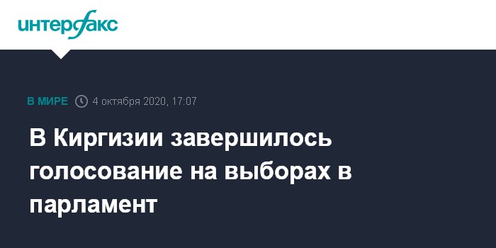 Москва. 4 октября. INTERFAX.RU - В Киргизии завершилось голосование на парламентских выборах, передает корреспондент "Интерфакса" в воскресенье.