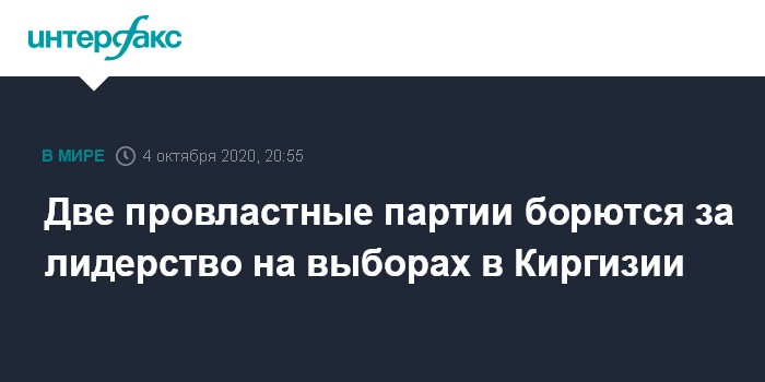 Москва. 4 октября. INTERFAX.RU - Провластная политическая партия "Биримдик" (Единство) вырвалась в лидеры на выборах в парламент Киргизии, набрав 24,5% голосов избирателей.