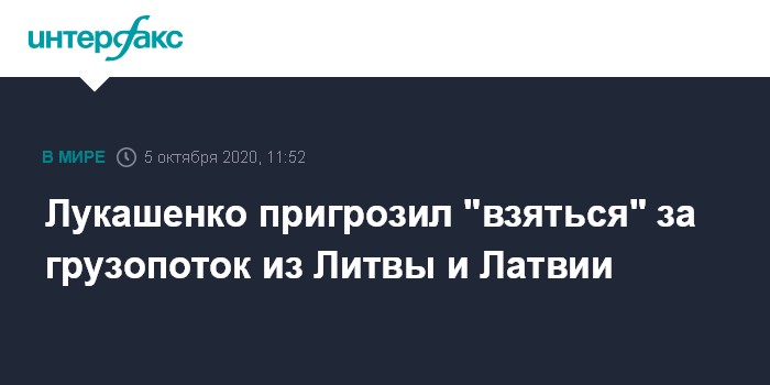 Москва. 5 октября. INTERFAX.RU - Президент Белоруссии Александр Лукашенко прогнозирует большие потери транзита через страну грузов из Литвы и Латвии.
