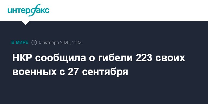 НКР сообщила о гибели 223 своих военных с 27 сентября