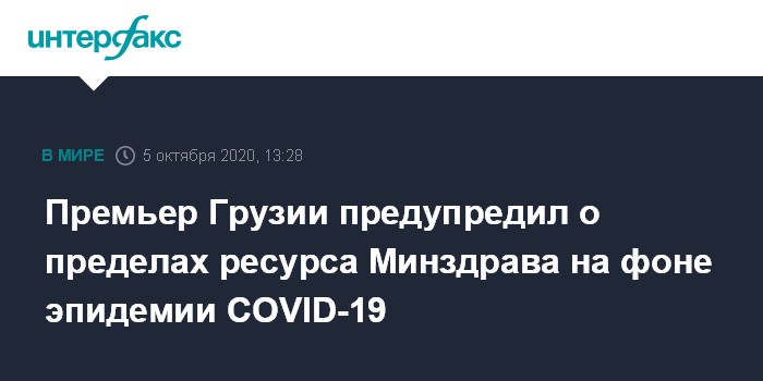Москва. 5 октября. INTERFAX.RU - На фоне роста в последние недели случаев заражения COVID-19 в Грузии премьер—министр Гиоргий Гахария заявляет, что эпидемиологическая обстановка остается под контролем медиков и правительства, однако это не означает безграничности ресурса системы здравоохранения.