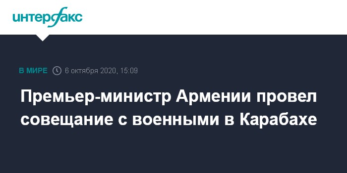 "Пашинян вместе с президентом республики Арцах Араиком Арутюняном и высшим офицерским составом вооруженных сил провел совещание. Командующий армией обороны НКР Джалал Арутюнян доложил об оперативной ситуации на фронте, нанесении контрударов в ответ на действия противника, о предстоящих шагах вооруженных сил Карабаха", - говорится в сообщении пресс-службы правительства Армении.