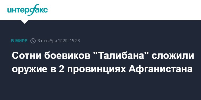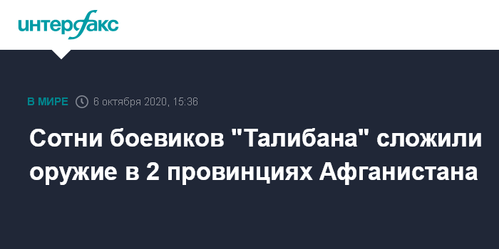 Москва. 6 октября. INTERFAX.RU - Около 300 членов радикальной группировки "Талибан" (запрещена в РФ) добровольно сложили оружие в двух северных провинциях Афганистана.
