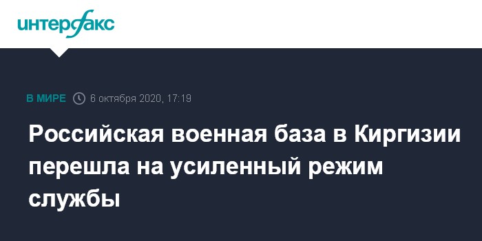 Москва. 6 октября. INTERFAX.RU - Усиленный режим несения службы введен на территории российской авиационной базы "Кант" в Киргизии в связи с обострившейся внутриполитической обстановкой, сообщила во вторник пресс-служба Центрального военного округа.