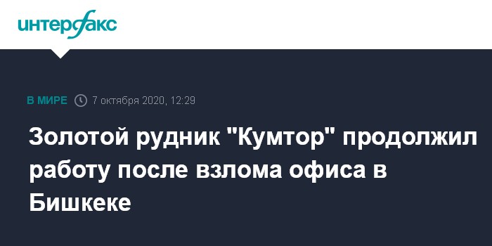 Золотой рудник "Кумтор" продолжил работу после взлома офиса в Бишкеке