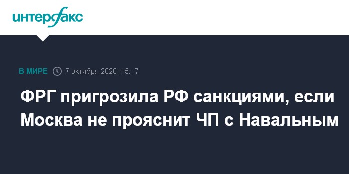Москва. 7 октября. INTERFAX.RU - Власти ФРГ будут ратовать за санкции против лиц, которые, по мнению Берлина, имеют отношение к инциденту с Алексеем Навальным, если Россия не прояснит обстоятельства дела, заявил глава МИД Германии Хайко Маас.