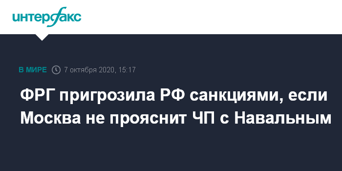 ФРГ пригрозила РФ санкциями, если Москва не прояснит ЧП с Навальным
