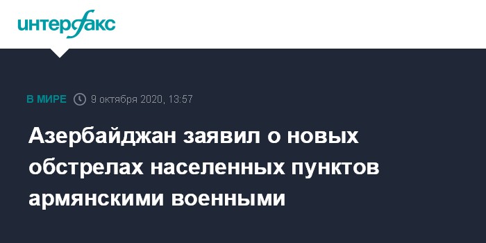 Азербайджан заявил о новых обстрелах населенных пунктов армянскими военными