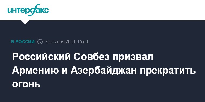 Российский Совбез призвал Армению и Азербайджан прекратить огонь