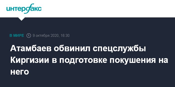 Москва. 9 октября. INTERFAX.RU - Экс-президент Киргизии Алмазбек Атамбаев заявил в обращении, опубликованном в соцсети его сторонниками, что информация о готовящемся на него покушении поступила еще вчера.