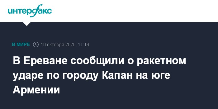 Москва. 10 октября. INTERFAX.RU - Вооруженные силы Азербайджана нанесли ракетный удар по городу Капан на юге Армении, сообщили в Минобороны Армении.