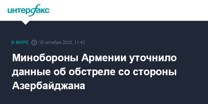 Москва. 10 октября. INTERFAX.RU - Представитель Минобороны Армении Арцрун Ованнисян скорректировал сообщение, в котором ранее говорилось об ударе азербайджанских военных по армянскому городу Капан.