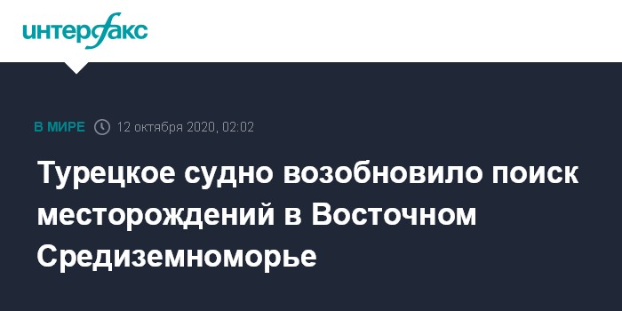 Москва. 12 октября. INTERFAX.RU - Турецкое исследовательское судно "Оруч Реис" вышло в море для продолжения геологоразведочной деятельности в Восточном Средиземноморье, сообщил в ночь на понедельник телеканал TRT Haber.