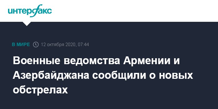 Военные ведомства Армении и Азербайджана сообщили о новых обстрелах