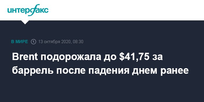 Brent подорожала до $41,75 за баррель после падения днем ранее