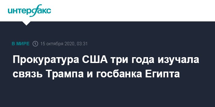 Москва. 15 октября. INTERFAX.RU - Федеральные прокуроры США три года изучали вопрос о возможной связи президента Дональда Трампа и египетского государственного банка во время предвыборной кампании 2016 года, сообщает телеканал CNN со ссылкой на источники.