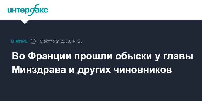 Москва. 15 октября. INTERFAX.RU - Сотрудники французской полиции в четверг провели обыски в доме министра здравоохранения страны Оливье Верана в рамках расследования деятельности кабмина во время пандемии коронавируса, сообщает телеканал BFMTV.