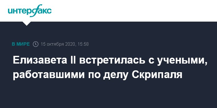 Москва. 15 октября. INTERFAX.RU - Королева Великобритании Елизавета II впервые после семи месяцев самоизоляции провела публичное мероприятие: она приехала в Солсбери, посетила военную лабораторию Портон-Даун и встретилась с военными экспертами, которые непосредственно работали по делу об отравлении Скрипалей "Новичком".