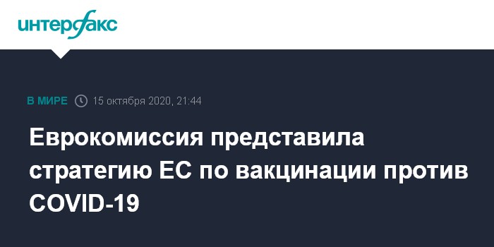 Москва. 15 октября. INTERFAX.RU - Европейская комиссия сообщила, что к настоящему времени подписала с производителями вакцин против вируса COVID-19 уже три контракта на почти 1 млрд доз и представила в четверг ключевые элементы стратегии вакцинации в ЕС.