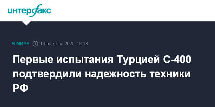 В свою очередь российский источник заявил "Интерфаксу: "Первые испытания Турцией систем С-400 подтвердили высокую надежность российской техники".
