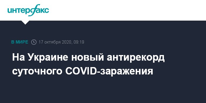 Москва. 17 октября. INTERFAX.RU - На Украине по состоянию на утро субботы, 17 октября, зафиксировано новое рекордное число заражений COVID-19 - 6 410 новых случая.