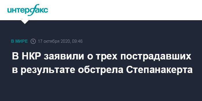 Москва. 17 октября. INTERFAX.RU - Трое мирных жителей пострадали в результате обстрела вооруженными силами Азербайджана столицы непризнанной Нагорно-Карабахской республики (НКР) Степанакерта, сообщает МЧС республики.