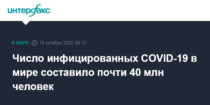 Число инфицированных COVID-19 в мире составило почти 40 млн человек