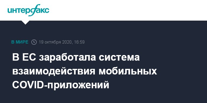 Москва. 19 октября. INTERFAX.RU - Система взаимодействия мобильных приложений для отслеживания контактов и цепочек заражения COVID-19 заработала в понедельник в Европейском союзе.